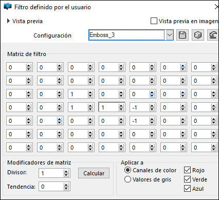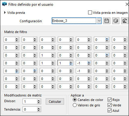 Efectos / Definido por el usuario Filtro / Emboss 3