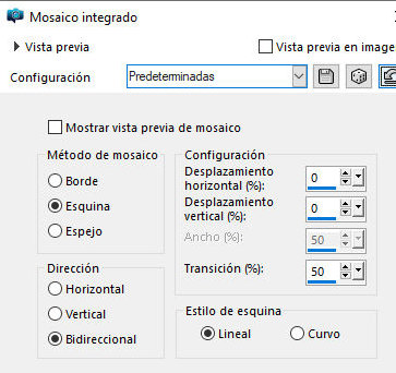 Efectos / Efectos de imagen / Mosaico integrado - predeterminado