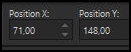 Activate the Pick Tool and set: X=71 - Y=148 - Press M