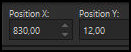 Activate the Pick tool and configure; X=830 - Y=12 -