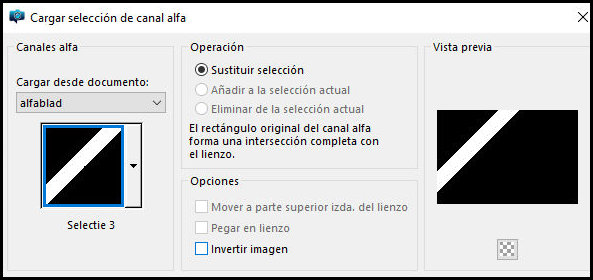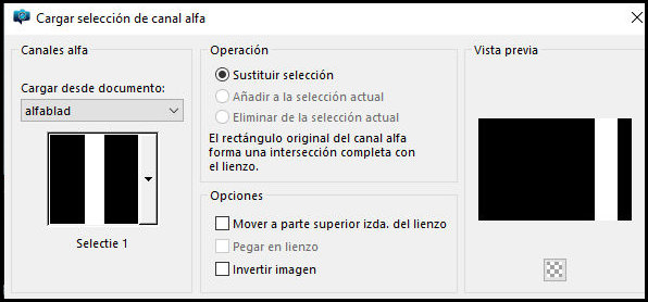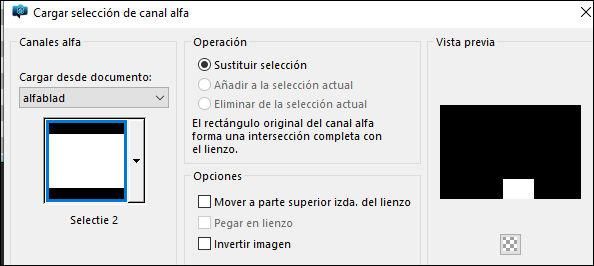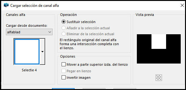 Selecciones/Cargar selección desde el canal alfa/Selección