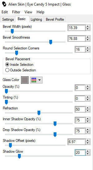 Effects / Edge Effects / Enhance Minimize essa imagem por enquanto Abra o tube [plaatje] Image / resize: 50% - all layers marcado Effects / Plugins / Eye Candy 5: Impact / Glass - cor background