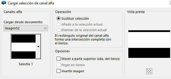 Selecciones / Cargar selección desde el canal alfa / Selección 1