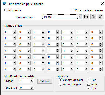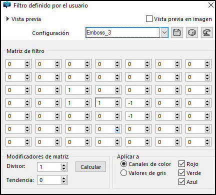 15. Efectos / Filtro definido por el usuario / Emboss 3