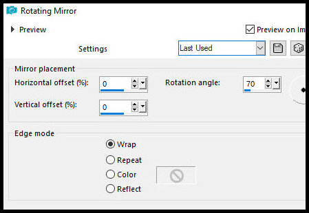 20.Selections / Invert Cole na seleção a imagem que está na memória Effects / Reflection Effects / Rotating Mirror