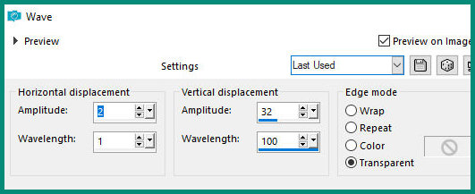 Effects / Edge Effecs / Enhance Drop Shadow igual anterior Layers / Arrange / Move down - 2 vezes Effects / Distort Effects / Wave