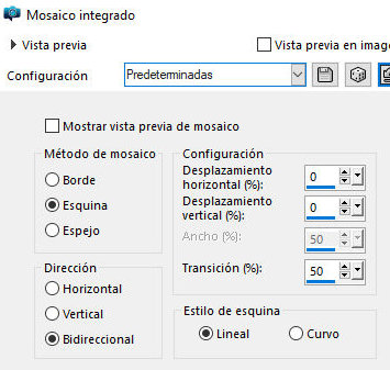 Efectos / Efectos de imagen / Mosaico integrado: predeterminado