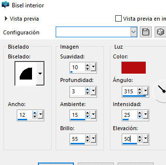 Efectos / Efectos 3D / Bisel interior - color rojo