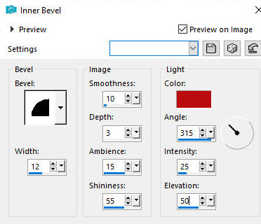 Effects / Edge Effects / Enhance Effects / 3D Effects / Inner Bevel - cor vermelha