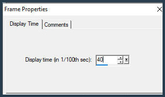 Animation / Frame Properties / Display time=40