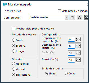 9. Efectos / Efectos de imagen / Mosaico integrado