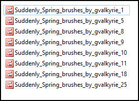 11 Repita o Blinds com Horizontal desmarcado Blend Mode: Overlay 12 Agora escolha um dos brushes fornecido no material Para o modelo foi escolhido o número 9 [Suddenly_Spring_brushes_by_gvalkyrie_9] Abra o brush na área de trabalho do psp 13 File / Export / Custom brush/ Nomeie(spring Bush) / OK 14 Ative a segunda layer a partir de cima Ative a Paint Brush Tool Selecione o [Spring Brush] Configure conforme o print