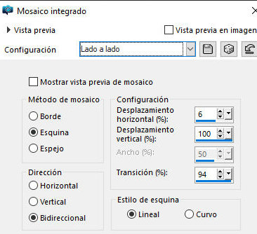 Efectos / Efectos de imagen / Mosaico integrado - preajuste [lado a lado]
