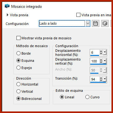Efectos / Efectos de imagen / Mosaico integrado - lado a lado -