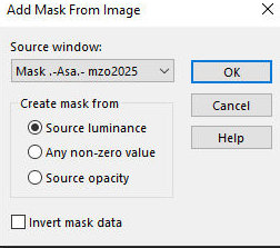9. Adicione nova layer 10. Pinte com a cor do foreground 11. Layers - New Mask Layer - From Image - Mask [Mask .-Asa.- mzo2025]