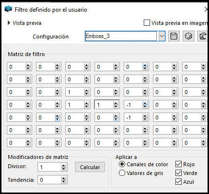 Efectos - filtro definido por el usuario - Emboss 3 (opcional)