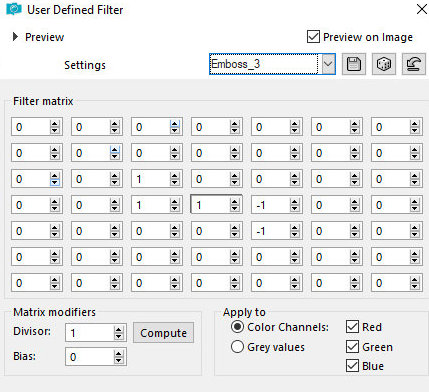 20. Effects / plugins / User Defined Filter / Emboss 3