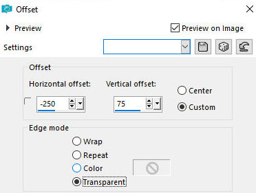 15. Adjust / Sharpness / Sharpen 16. Select none STEP 4 17. Layers / Duplicate 18. Effects / Image Effects / offset [-500 /0]