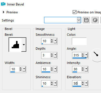 STEP 13 67. Selections / Select all 68. Image / Add borders / 5px / branco 69. Selections / Invert 70. Pinte a seleção com a pattern do foreground 71. Selections / Select all 72. Image / Add borders / 50px / branco 73. Selections / Invert 74. Pinte a seleção com a pattern do background 75. Effects / 3D Effects / inner Bevel