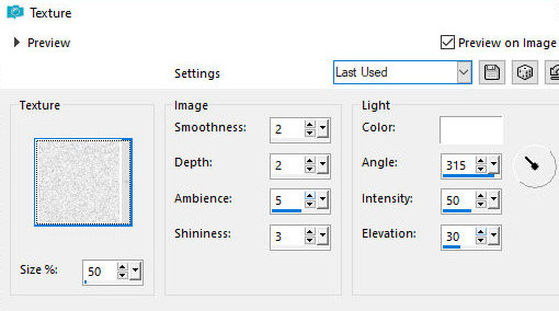 38. Selections - Select all 39. Image - Add borders - 10px - cor do foreground 40. Selections - Invert 41. Effects - Texture Effects - Texture - igual anterior