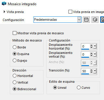 Efectos / Efectos de imagen / Mosaico integrado (predeterminado)