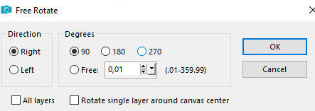 23. Layers / Duplicate 24. Image / Resize: 70% - all layers desmarcado 25. Image / Free Rotate /[right/90]