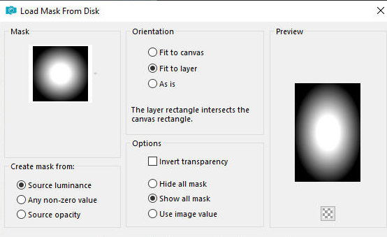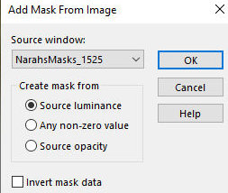 45. Ative a layer Raster 2 46. Adicione nova layer 47. Pinte com a cor branca 48. Layers / New mask Layer / From Image / Mask [NrahsMasks_1525]