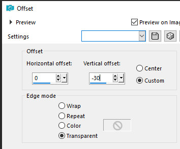 28. Layers / duplicate 29. Merge Group 30. Image / Resize: 70% 31. Effects / Image Effects / Offset [-305/145]