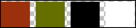 Colores: Primer plano: #9b310d - Fondo: #646f03