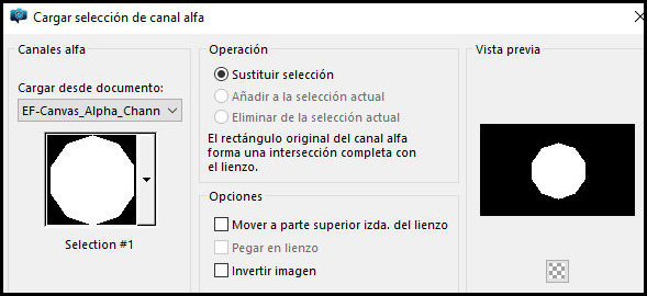 Selecciones - Cargar selección desde el canal alfa - Selección n.° 1
