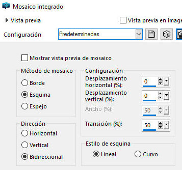 Efectos - efectos de imagen - mosaico integrado - predeterminado