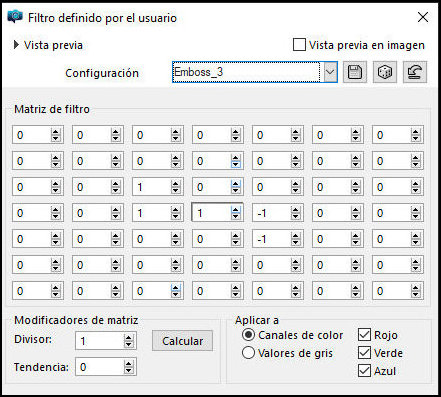 15. Efectos / Filtro definido por el usuario / Emboss 3
