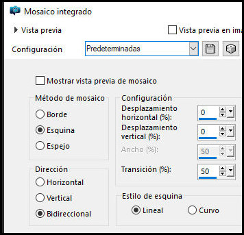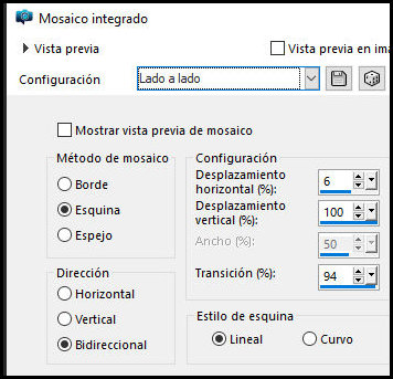 Efectos / Efectos de imagen / Mosaico integrado - Lado a
