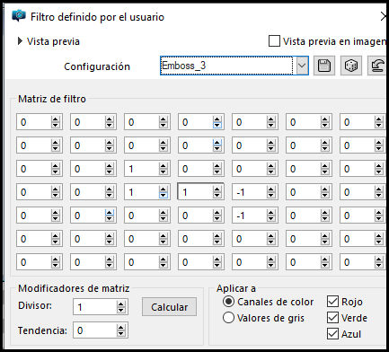 29. Efectos / Filtro definido por el usuario / Emboss 3