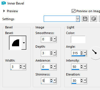 Merge group Image - mirror - mirror horizontal Drop Shadow - igual anterior Selections - select all Image - add borders - 10px - cor do foreground Selections - invert Effects - 3D effects - inner bevel