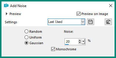 Effects / Edge Effects / Enhance Continue na layer Selections / load selection from alpha channel / Selection 2 Selections / Promote selection to layer Adjust / Blur / Gaussian Blur: 10 Adjust / Add / Remove Noise / Add Noise
