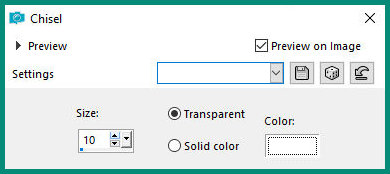 Selections / Modify / Contract: 15 Pressione Delete Effects / 3D Effects / Chisel