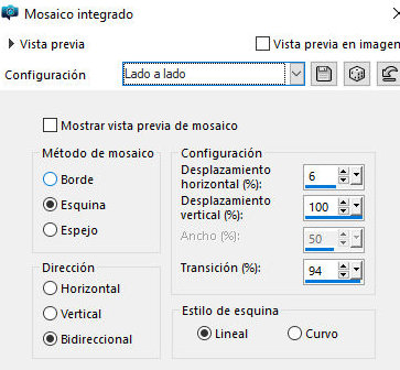 5. Efectos - Efectos de imagen - Mosaico integrado - predeterminado