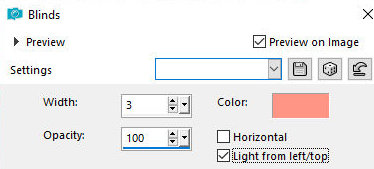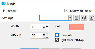 14. Selections / Promote selection to layer 15. Effects / Texture Effects / Blinds - Cor #89a238