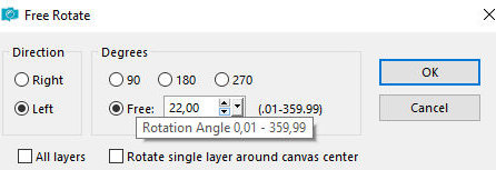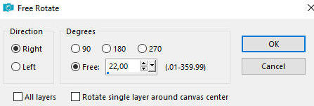 38. Merge down 39. Layers / Duplicate 40. Ative a layer abaixo 41. Image / Free Rotate [right/22]