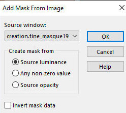 14. Merge group 15. Adicione nova layer 16. Pinte com a cor branca 17. Layers / New Mask layer / From Image / Mask [creation.tine_masque191] 40/5