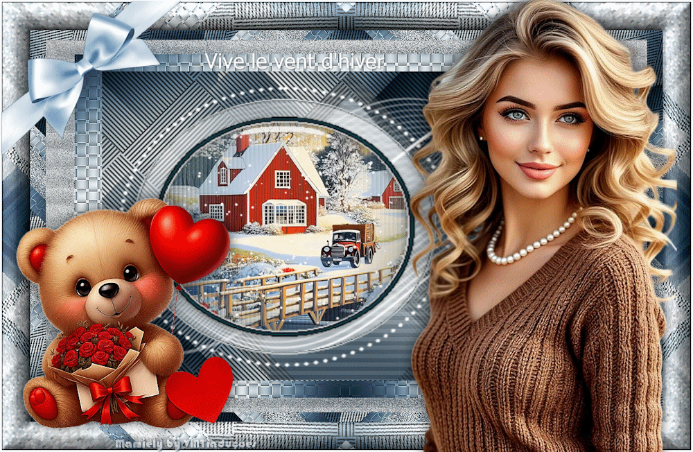 Ative a layer superior Copiar [Enfant-hiver-ML] Cole como nova layer Drop shadow de sua escolha Copie o tube [Neige-ML] Cole como nova layer Posicione conforme modelo Copie o tube [Neud] Cole como nova layer Posicione conforme modelo Copie / Cole como nova layer / Posicione outros tubes de sua escolha(opcional) Copie o texto [vive le vent d'hiver] (tem duas opções no material) Posicione conforme modelo Coloque as assinaturas Image / Resize: 1000px (width) - all layer marcado