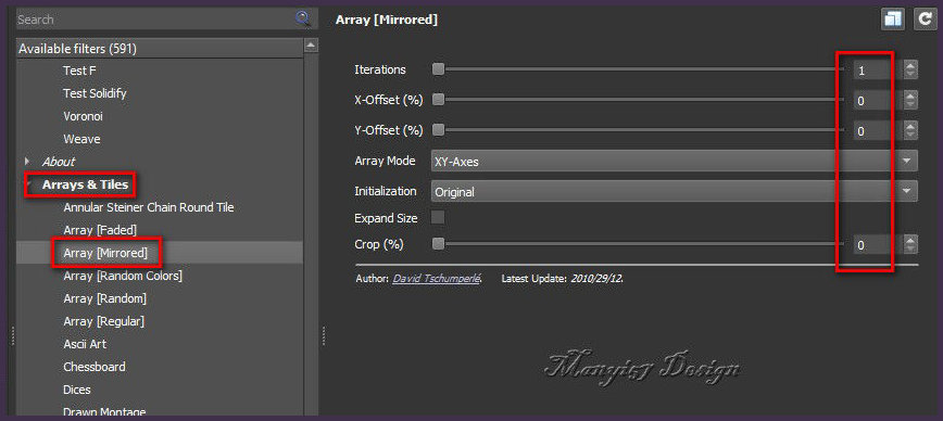Effects / Plugins / GMIC_QT / Arrays and Tiles / Array (Mirrored)