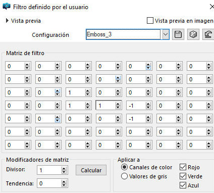 Efectos / Filtros definidos por el usuario / Emboss 3