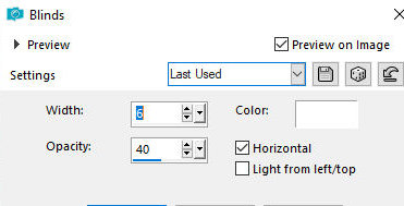 34. Copy the landscape and paste into the selection 35. Select none 36. Image - Add borders - 2px - white 37. Image - Add borders - 10px - #2c4887 38. Image - Add borders - 2px - white 39. Selections - Select all 40. Image - Add borders - 50px - foreground color 41. Drop shadow:0 0 60 30 #032524 42. Selections - Invert 43. Effects - Texture Effects - Blinds
