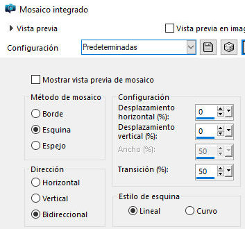 Efectos / Efectos de imagen / Mosaico integrado - predeterminado