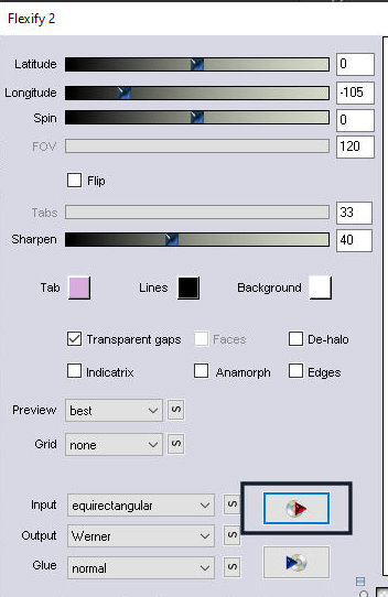 47. Ative a layer de fundo - Raster 1 48. Layers / Duplicate 49. Effects / Plugins / Flexify 2 / Preset - Preset [Loving you] - Clique na flecha vermelha assinalada no print / Localize a pasta de material deste tutorial e selecione o preset