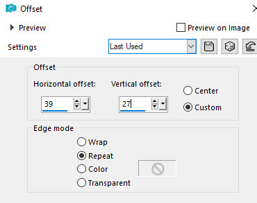 63. Ative a layer de fundo - Raster 1 64. Copie o deco [Deco-lovingyou-tsha] e cole como nova layer 65. Effects / Image Effects / Offset [39/27]