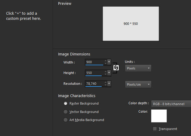 3. Abra uma nova imagem com a cor branca tamanho 900x550px