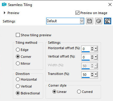 4.Selections / Select all 5. Copie o tube principal e cole na seleção 6. Select none 7. Effects / Image Effects / Seamless Tiling - Default